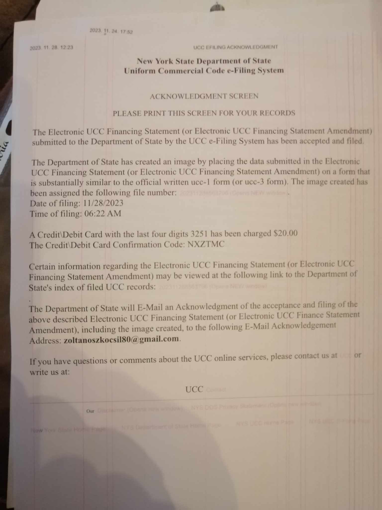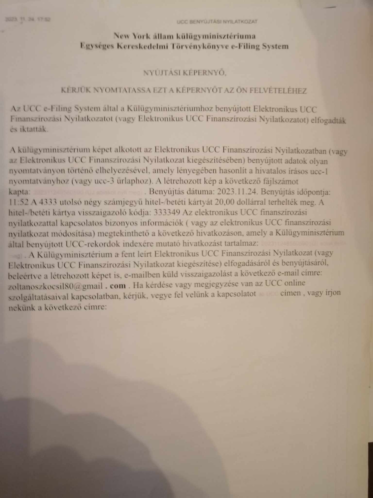 Ezen a weboldalon közzétett UCC Dokumentumok - UCC Financing Statement-ek (Finanszírozási